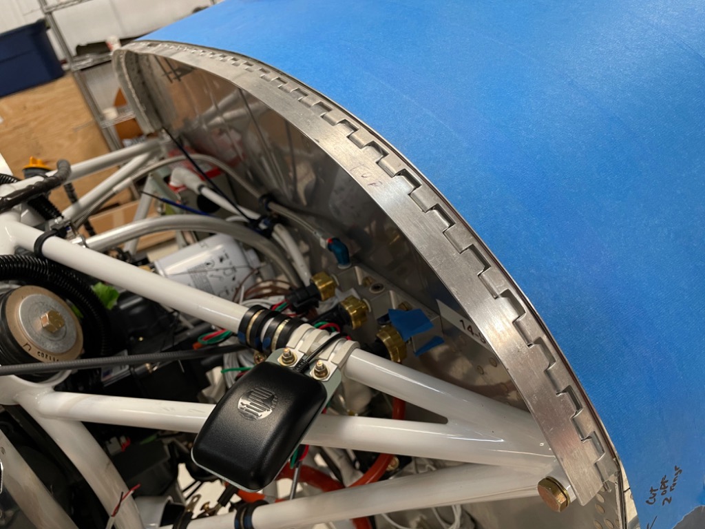 Finished cowl attach hinge and pins.