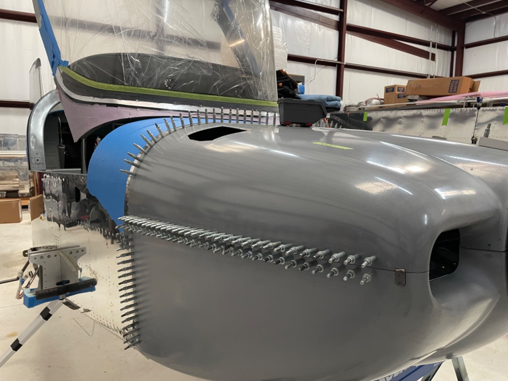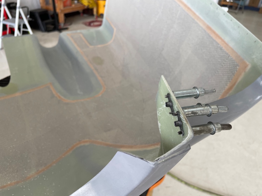 Continued baffle work. Finished drilling and prepping all hinge holes. Drilled, prepped for, and install nut plates.