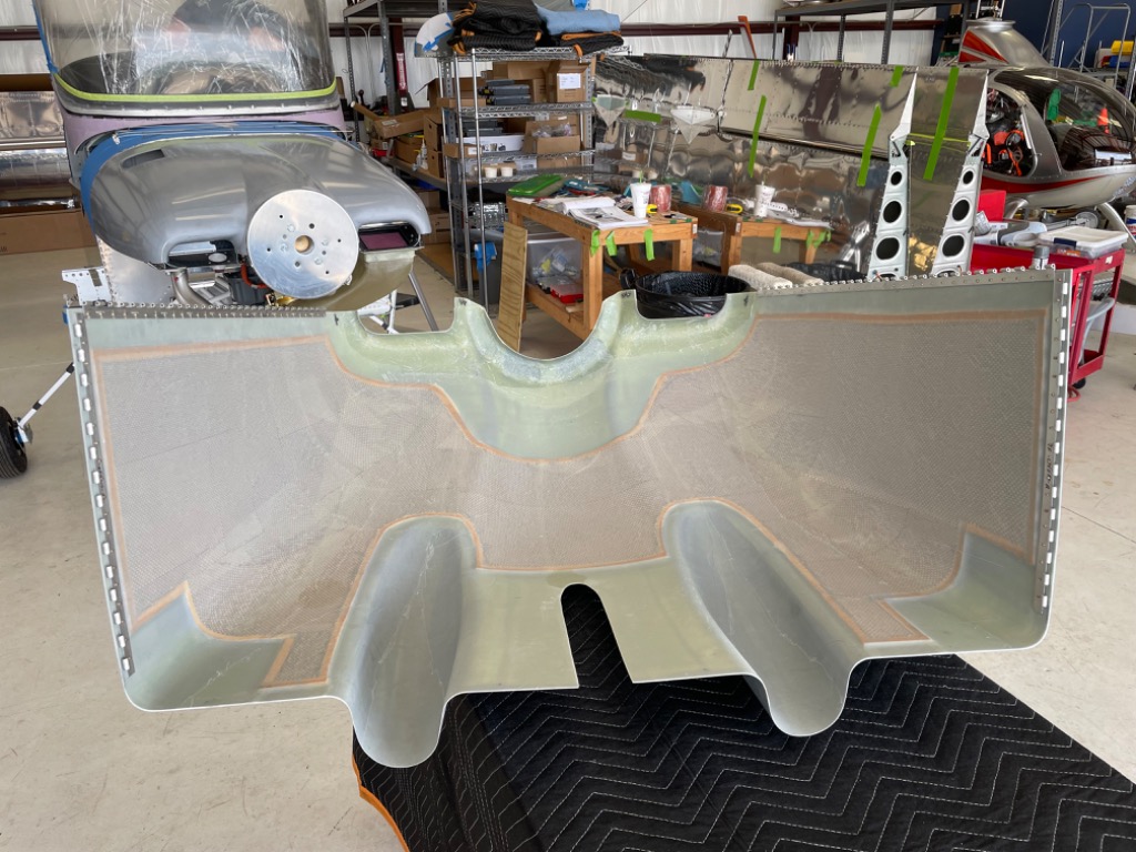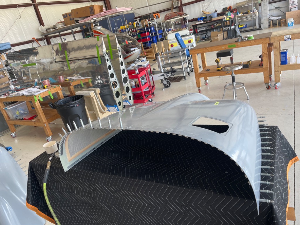 Countersink rivet holes for cowling rivets. Rivet hinges to cowling. Begin air dam installation.