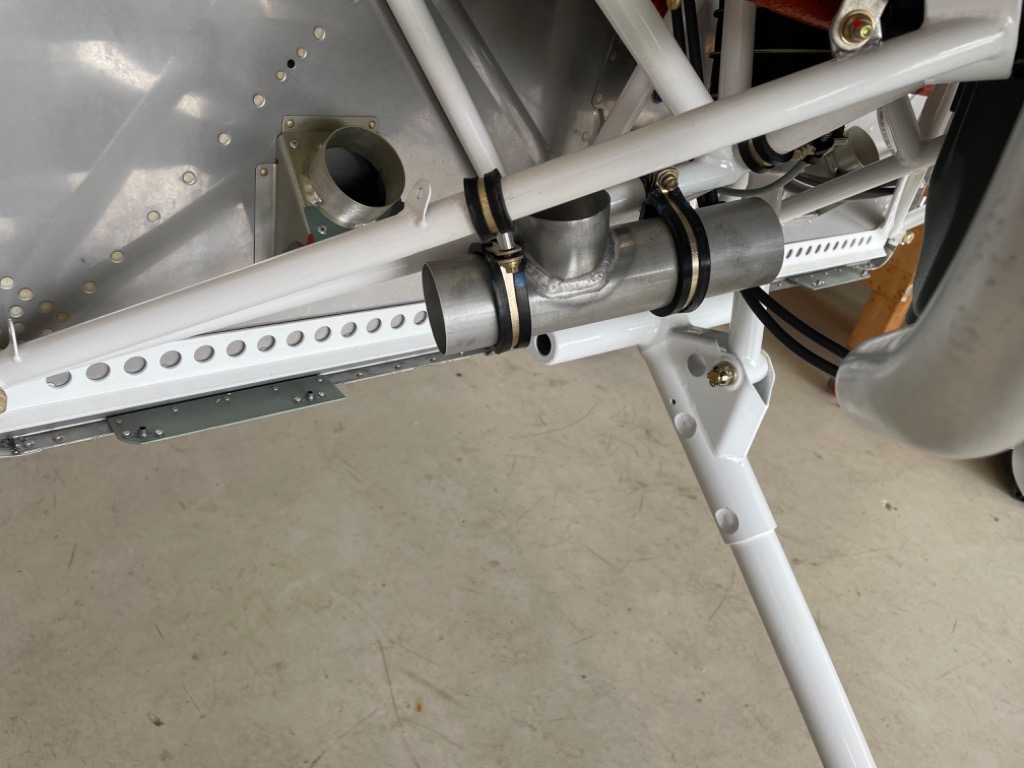 Attached air ramps to cowling. Install heat system T. Cut scat tubes. Cut exhaust hangers