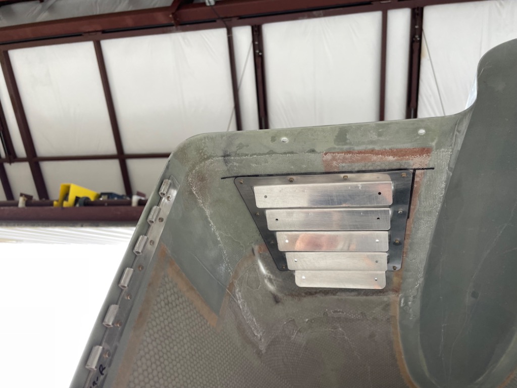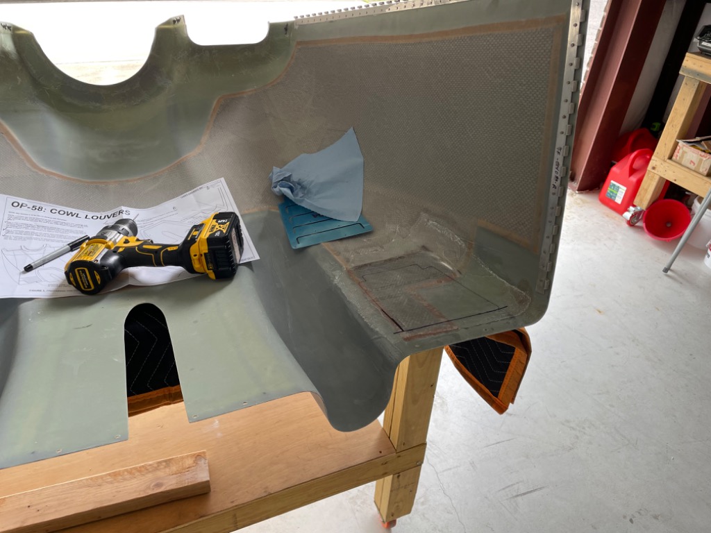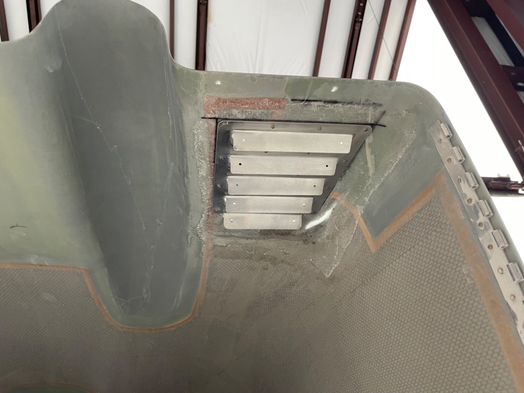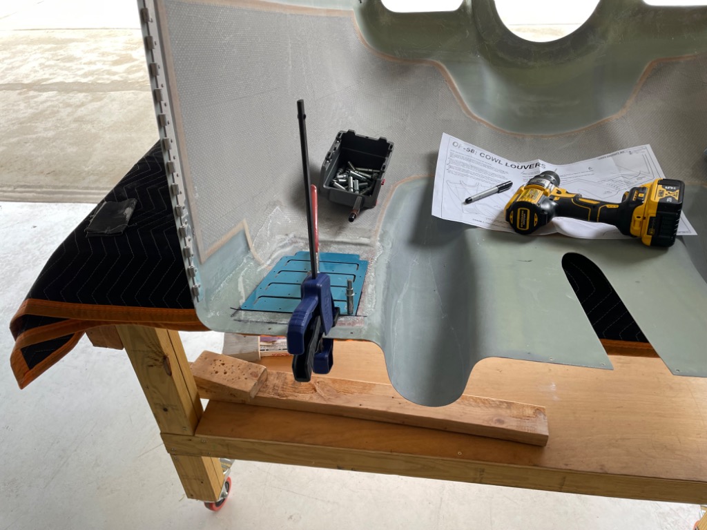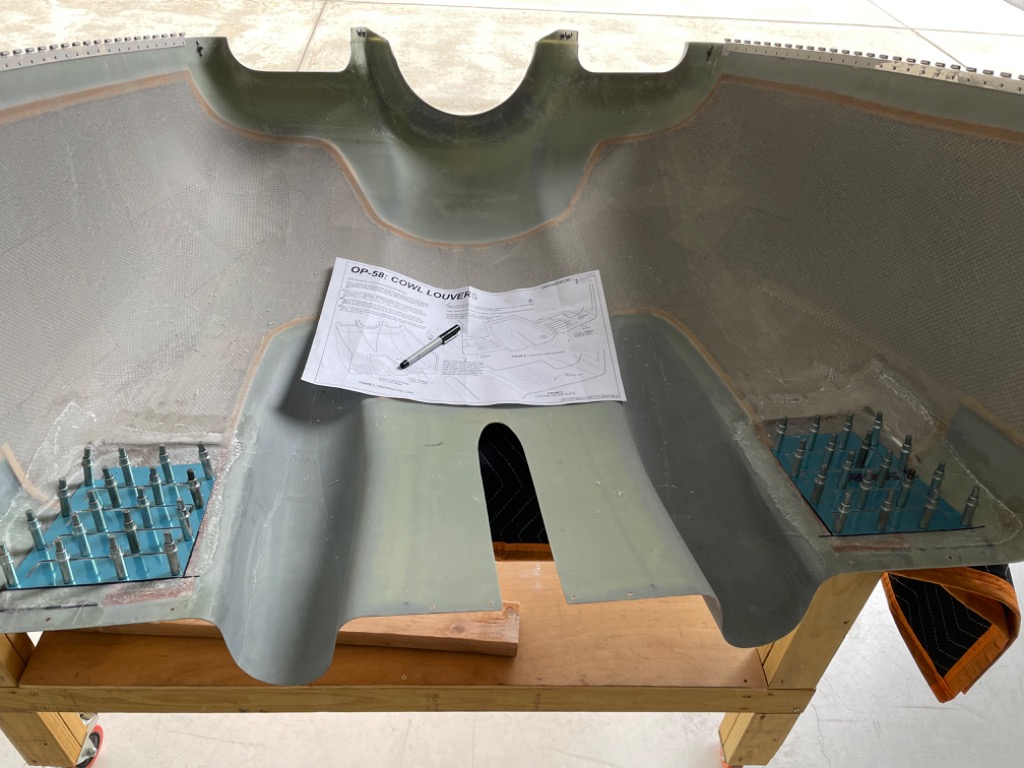 Finished air ramps on upper cowling. Installed cooling louvers on lower cowling. Finished exhaust install. Started heat muff installation.