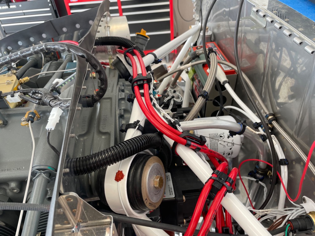 Wired left and right PMags. Tested operation and timed engine. Ran left PMag spark plug wires.