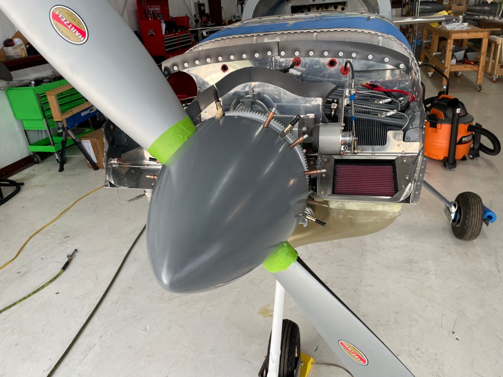 Continued spinner installation. Drilled holes and installed screws for front plate. Fabricated spacers and drilled holes x